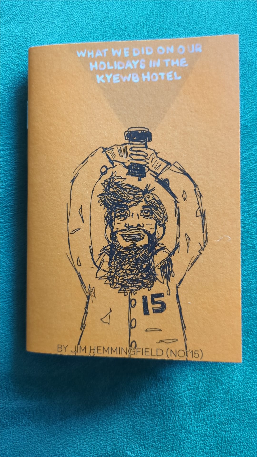 32 page photocopy zine. Daily drawings of my adventures in Jon Chandler's KYEWB Hotel. Mostly wandering through corridors, getting slimed and finding eggs. A comic? Maybe? The entire book is available to view on the discontinued Jim Reaper instagram: https://www.instagram.com/the_jim_reaper/?hl=en